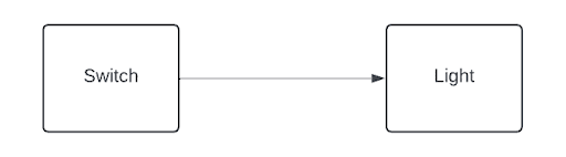 Most simply, we could have a switch class that uses a turnOn method to turn on the light. This may work just fine, but now the switch has a dependency on the light, meaning that we can't use the switch for anything else! That doesn't make much sense. The switch shouldn't have to know anything about the light.